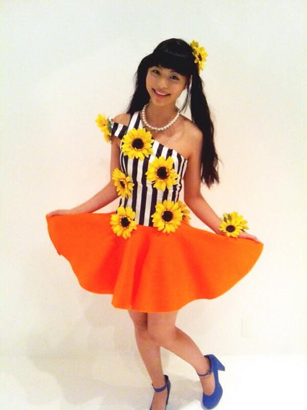 寺嶋由芙の衣装は夏らしい左肩出しストライプなタンクトップにパールネックレス、向日葵オブジェを髪からトップス全体に沢山あしらい、上品な広がりの鮮やかなオレンジスカートに補色のブルーパンプス、ステージ上での明るさ華やかさは息を飲むようで、彼女を初めて見た会場が「晴れたら空に豆まいて」の和風に小洒落た雰囲気ある空間だったせいもあるかもしれないけれど、本当に素敵だと思った、そして時々対バンなどでステージを見るあの可愛いインディーズユニットの人達にも、これ位の上品なセンスあるしっかりとした衣装を着せてあげたいと思ってしまった。一体何を書いているのだろう。